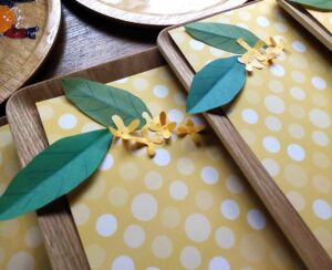 だから、お客様の敷紙にも、なんてかわいいキンモクセイが花盛り‼️